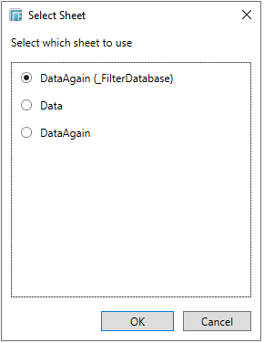 If you are using an MS Excel workbook, the Select Sheet dialog displays with the list of available MS Excel worksheets contained in the selected MS Excel workbook.