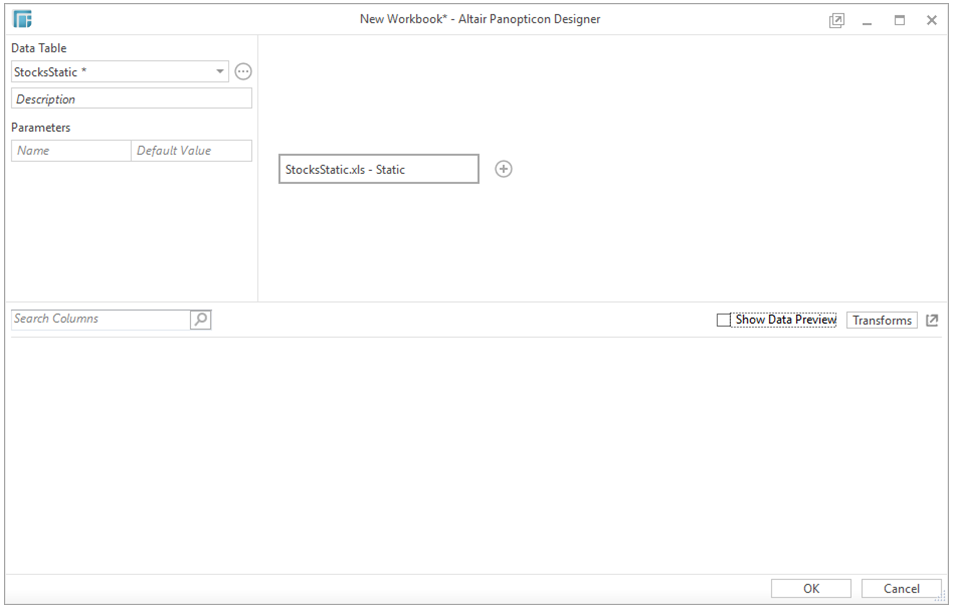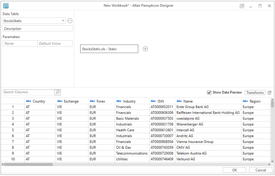 Panopticon Designer (Desktop) will retrieve data from the source you have designated and display this Edit Data Table screen.