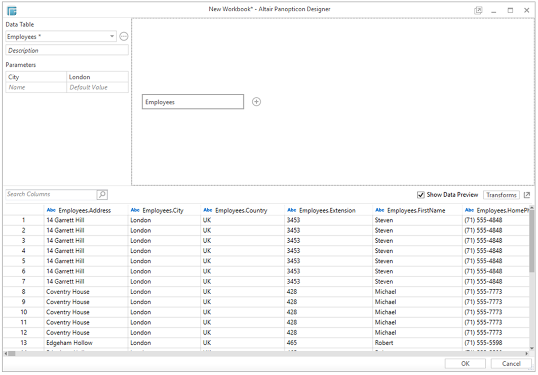 Click OK to confirm the selection and retrieve the record set into Panopticon Designer (Desktop).
