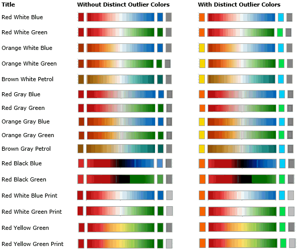 Where only the outliers are important, the central color range is grayed and only the Distinct Outlier Colors are used in the Visualization.