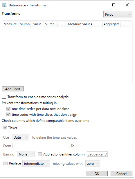 Check Transform to enable Time Series analysis box.