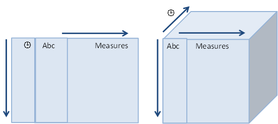A series of numeric or text fields providing values for each unique ID for each available Date/Time stamp.