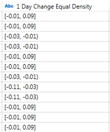 For this example, the minimum value of the Source Column (1 Day Change %) is -0.35 and the maximum value is 0.21. When there are three buckets, the ranges will be: