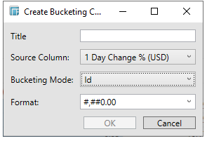 The Create Bucketing Column dialog displays.