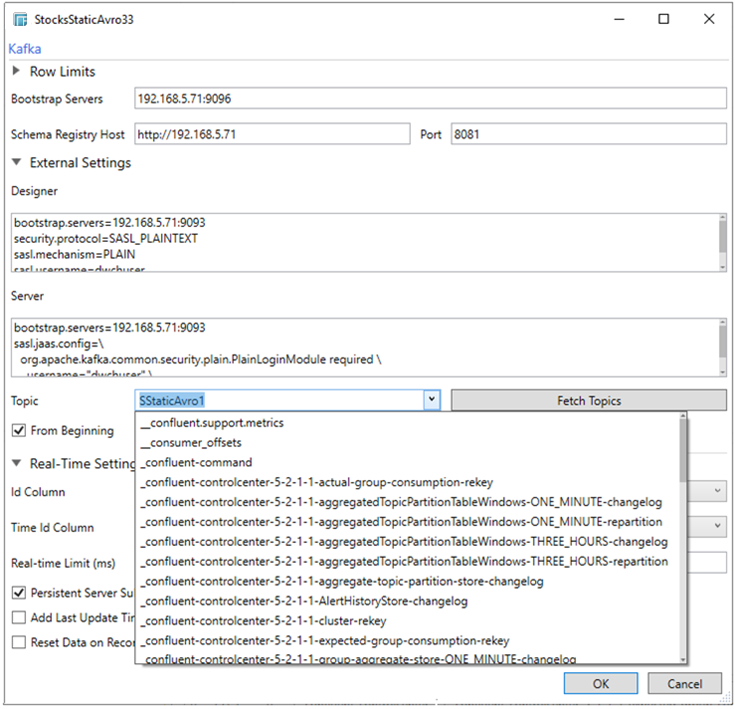 By default, the value is localhost:9092. However, this can be overridden by specifying another bootstrap server in the External Settings text box (as specified in step 3).