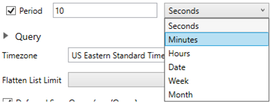 In Kx kdb+, you can modify the query to regroup the aggregated data per time units (i.e., Seconds, Minutes, Hours, Date, Week, Month). Check the Period box, enter the time duration, and select the time unit.