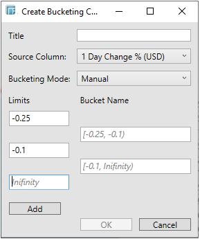 Note that the preceding Infinity bucket value is now the minimum limit value of the new bucket.