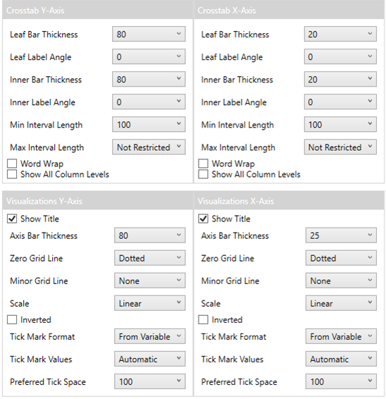 Refer to Visualizations Axes and Cross Tab Axes for more information.