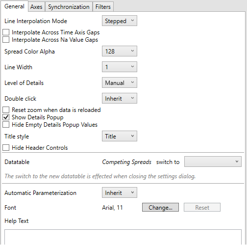 Specifies the level of color transparency/opacity for the Positive and Negative Spread colors. The value is from 0 to 255 with the default set to 128.