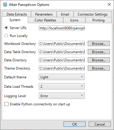 Open Panopticon Designer (Desktop) then select Tools > Options.