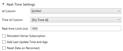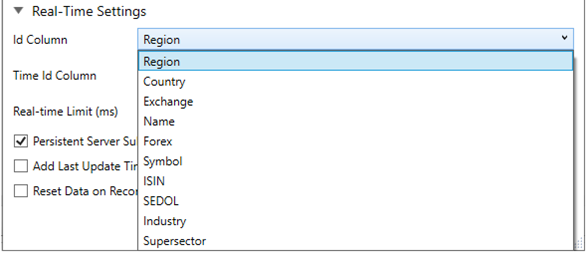 On the expanded Real-Time Settings section, if the Type is set as Text, it will be listed in the Id Column drop-down list box and can be used to select a key column to manage data updates and inserts.
