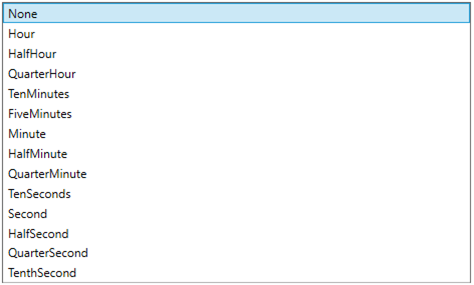 Select the barring period. This conflates the data set to a defined granularity or any of the following time intervals: