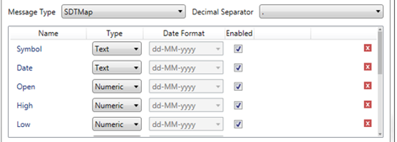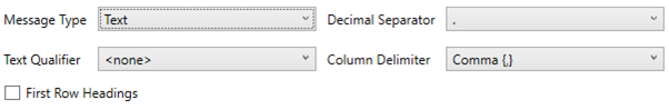 If Text is selected, confirm the Decimal Separator, Text Qualifier, Column Delimiter, and if the first row of the message include column headings.