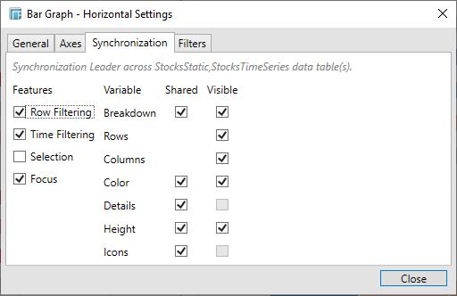 Note that the Visible check boxes for the follower or dependent visualization are all disabled.