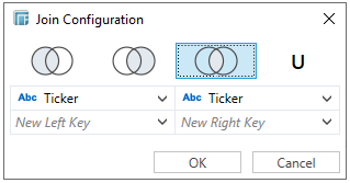 This creates a visible line connecting both tables and the Join Configuration dialog displays with the suggested join keys.