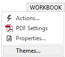 The Workbook Theme dialog allows management of the theme. On the Open Workbook Layout, themes inside the workbook can be updated.