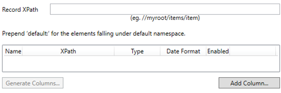 For the XML File source, the schema of the source file is then defined by clicking the Generate Columns… button.