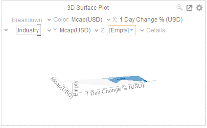 For example, in this 3D Surface Plot visualization, the Industry column is added as the breakdown, when the [Empty] value is selected, the Z axis will be set to 1 (0 to 1.00):