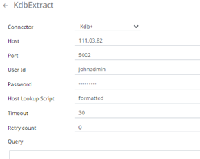 The connection details from the host lookup script will be used instead. { "host": "localhost", "port": 5001, "username": "john", "password": "●●●●" } · For Linux connector.host.lookup.scripts=local=/etc/panopticon/appdata/host.sh,formatted=/etc/panopticon/appdata/hostFormatted.sh There are two keys specified in this property which are local and formatted. The shell script for the local key is host.sh which is: echo $@ After executing the host lookup script, the received connection details will be the values entered in the connector UI.