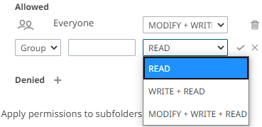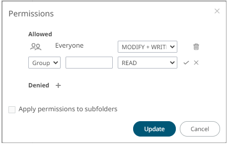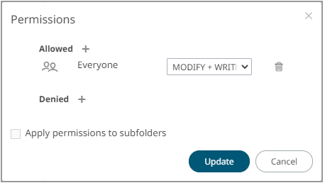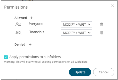 The Apply Permissions to Subfolders check box is only enabled when there is an existing subfolder. |