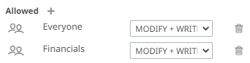The user or group is added under the Allowed list.