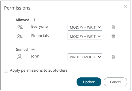 ·         check the Apply Permissions to Subfolders box