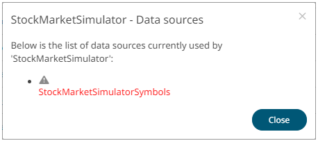 The list of data sources used by the application is displayed. For example: