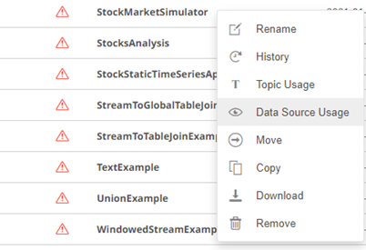 However, if  is displayed, right-click on the application and select Data Source Usage on the context menu.