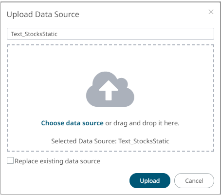The name of the data source is displayed on the uploaded data source area and in the Name box.