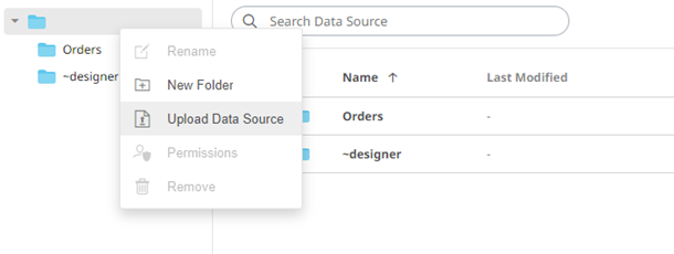 Users with a Designer role can upload data sources to folder or subfolders to which they have permission.