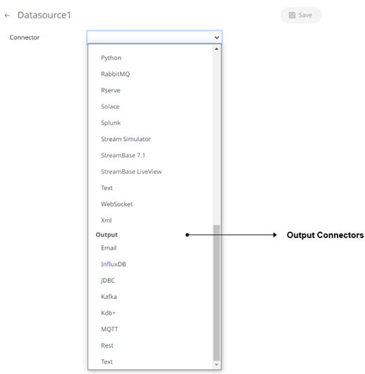 Panopticon Streams supports creation of data sources that can be used as inputs or outputs in the application model.