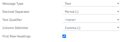 · If Text is selected, confirm the Text Qualifier, Column Delimiter, and if the first row of the message includes column headings.