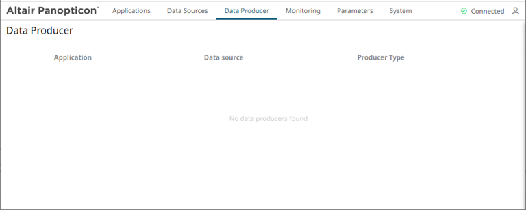 Data Producer tab. Initially, no records are displayed when there are no running applications or the applications that are running have no data producers