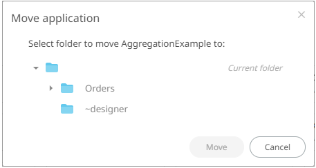 The Move Application dialog displays with the folder or subfolders to which the user is allowed to move the application.