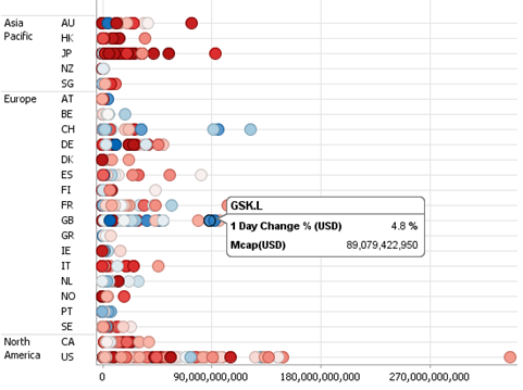 In comparison with the Bar Graph, Dot Plots do not use a zero baseline and are less cluttered. This makes it easier to add additional data variables to the visualization.
