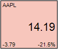 Where the price is displayed in a double height label, the change in price to the bottom left of the tile, and the color shown as the background of the tile, and the numeric value displayed in the bottom right of the tile.
