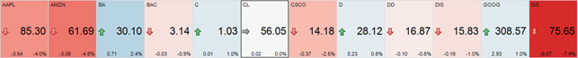 Figure 3-61. A Cross Tab of Ticker Tiles for a Selection of Stocks