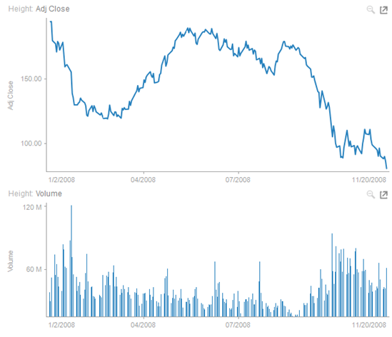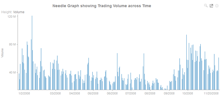 The most common use of a Needle Graph is when showing the trading volume for a stock, typically underneath the price performance.