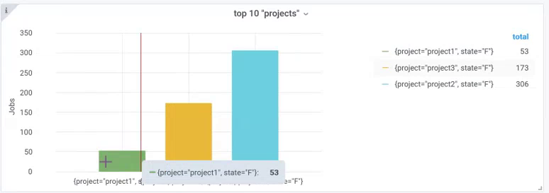 Figure 2. Top 10 Projects in Live Data for Jobs and Nodes Dashboard