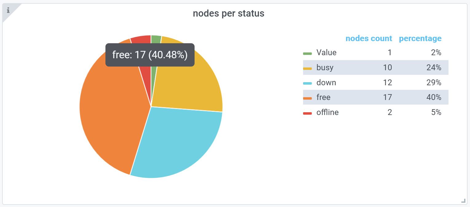 This chart provides the details of all the nodes in the cluster based on their status.