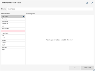 Das Dialogfeld „Textmakro bearbeiten“ wird angezeigt.