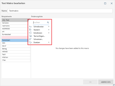Sie können die folgenden Änderungen als Makros auf Textspalten anwenden: