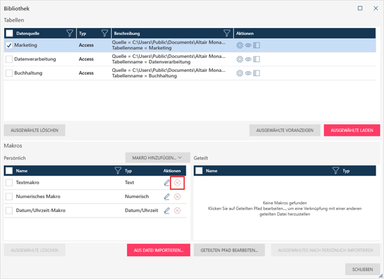 Um ein Makro zu löschen, wählen Sie das Symbol Löschen
