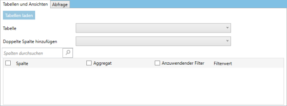 Wählen Sie die Registerkarte Abfrage, um Tabellen und Ansichten mit Hilfe einer SQL-Abfrage zu laden. |
