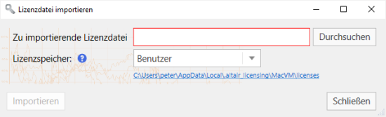 Wenn Sie Benutzer auswählen, wird die Lizenz im Ordner “C:\Users\[User]\AppData\Local\.altair_licensing\[ComputerName]\licenses” gespeichert.