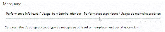 Ce curseur permet de régler la performance du masquage lors du remplacement par alias constant :