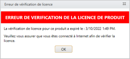 Si votre licence arrive à expiration et si aucune connexion Internet n’est détectée, le message suivant s’affiche :