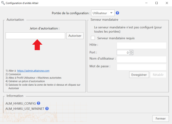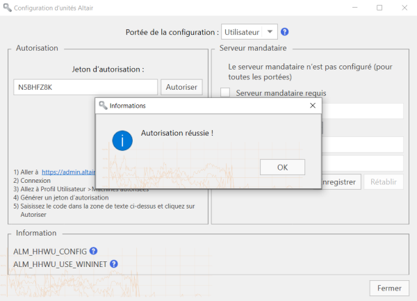 À l’écran Configuration d’unités Altair qui s’affiche, saisissez le code d’autorisation que vous avez reçu à l’étape 3 dans le champ prévu à cette effet, puis cliquez sur Autoriser.