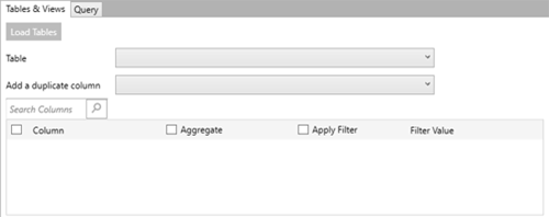 Allows you to load, and then select, the tables from your database by manually selecting from a list. To load tables and views via search and select: