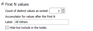 When specifying key values for a summary, on the Matching tab of the Summary Keys Window, select First N values: to display this section: